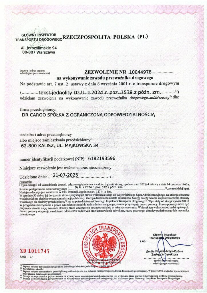 Działamy zgodnie z obowiązującymi przepisami. Posiadamy wymagane licencje oraz ubezpieczenia, co daje naszym klientom pełne poczucie bezpieczeństwa i pewność realizacji usługi na najwyższym poziomie.